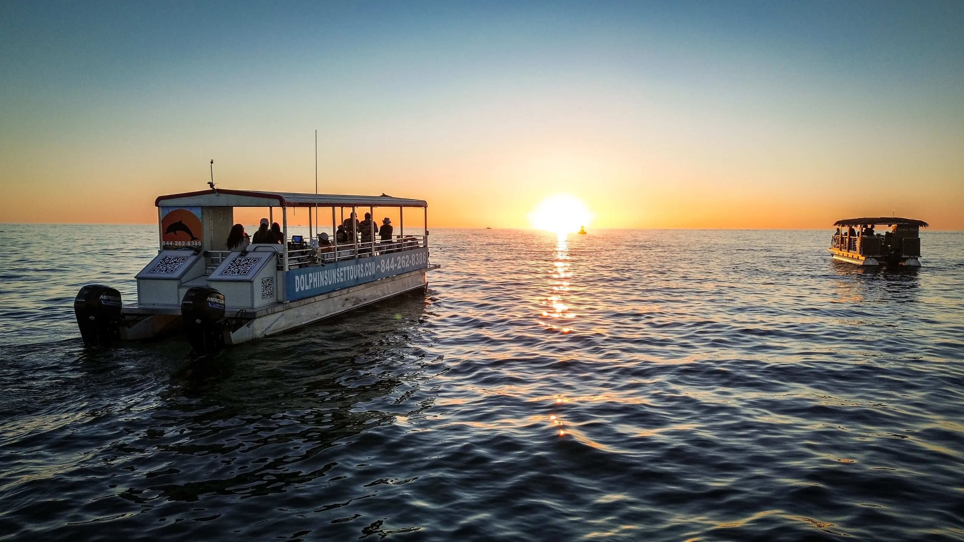 Join our sunset tour at the convenient public docks on the beautiful Bradenton Beach City Pier located behind Anna Maria Oyster Bar off of Bridge Street in Bradenton Beach on Anna Maria Island. Experience the magic of an Anna Maria Island sunset from the best seat in the house — the water! Our Sunset Tour is the perfect way to end your day in paradise. Sit back, relax, and enjoy a peaceful cruise along the island’s stunning coastline as the sky transforms into a masterpiece of color.